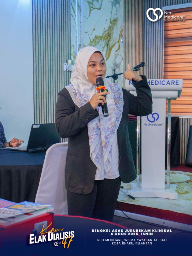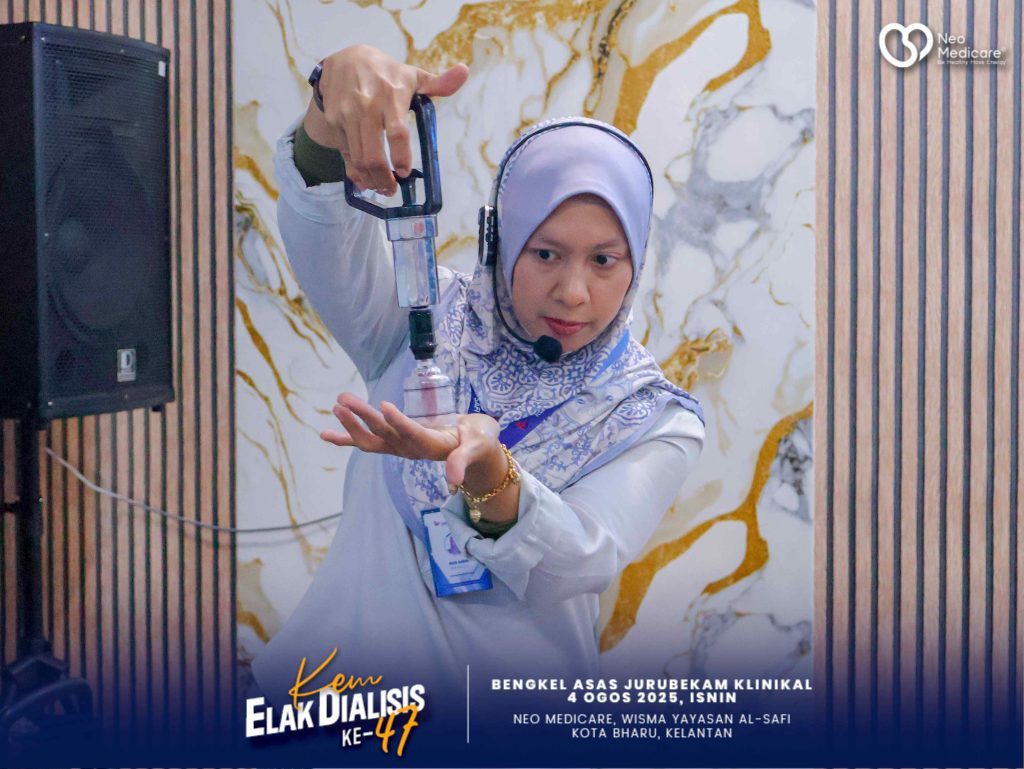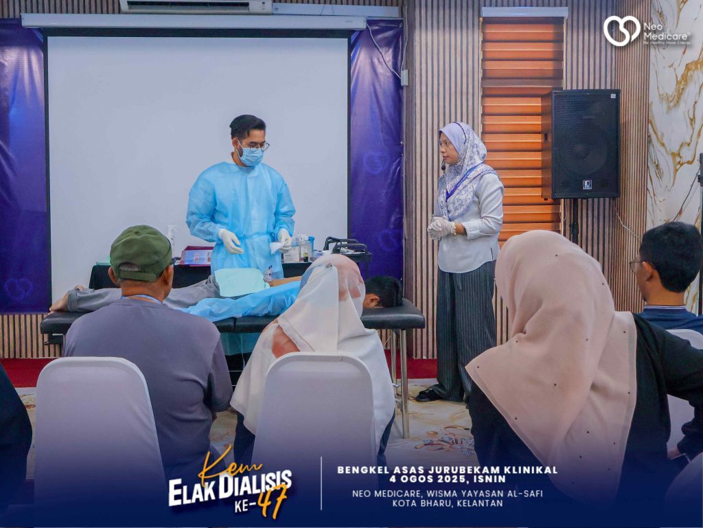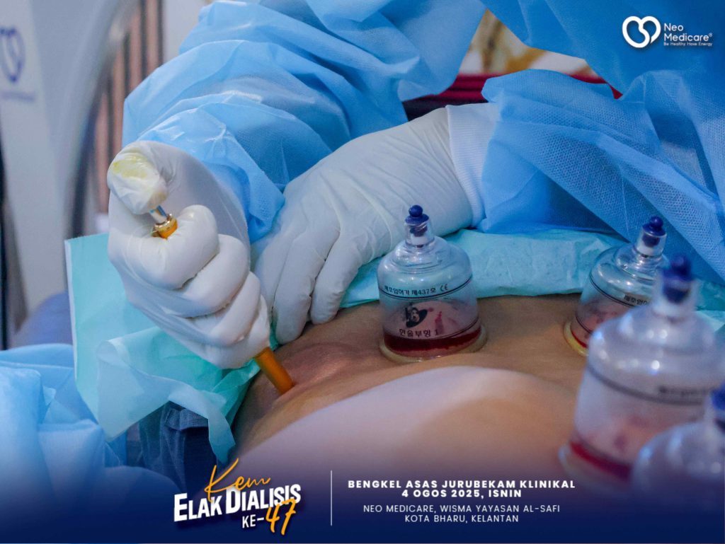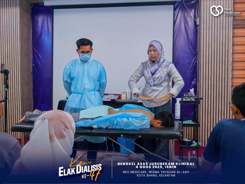 Hari kedua kem elak dialisis dimulakan dengan kelas bekam klinikal bermula jam 9 pagi sehingga jam 12 Tengah hari yang disampaikan oleh Intan Nor Syafiqah binti Mohamed. Kelas bekam praktikal dimulakan dengan menunjukkan cara-cara yang betul untuk melakukan bekam, termasuk jenis cawan yang digunakan.  Selepas itu, kami memberi peluang kepada peserta untuk mempraktikkan teknik bekam di bawah bimbingan tenaga pengajar yang berpengalaman serta mengajar langkah-langkah keselamatan untuk memastikan prosedur dilakukan dengan selamat dan berkesan.